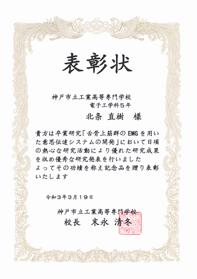 高専では電子工学科に在籍し,卒業研究では生体電気信号を用いたHMIの開発を行いました.